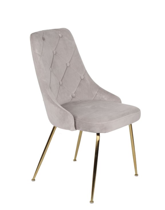 Krzesło jest tapicerowane miłą w dotyku tkaniną welwet w beżowym kolorze.