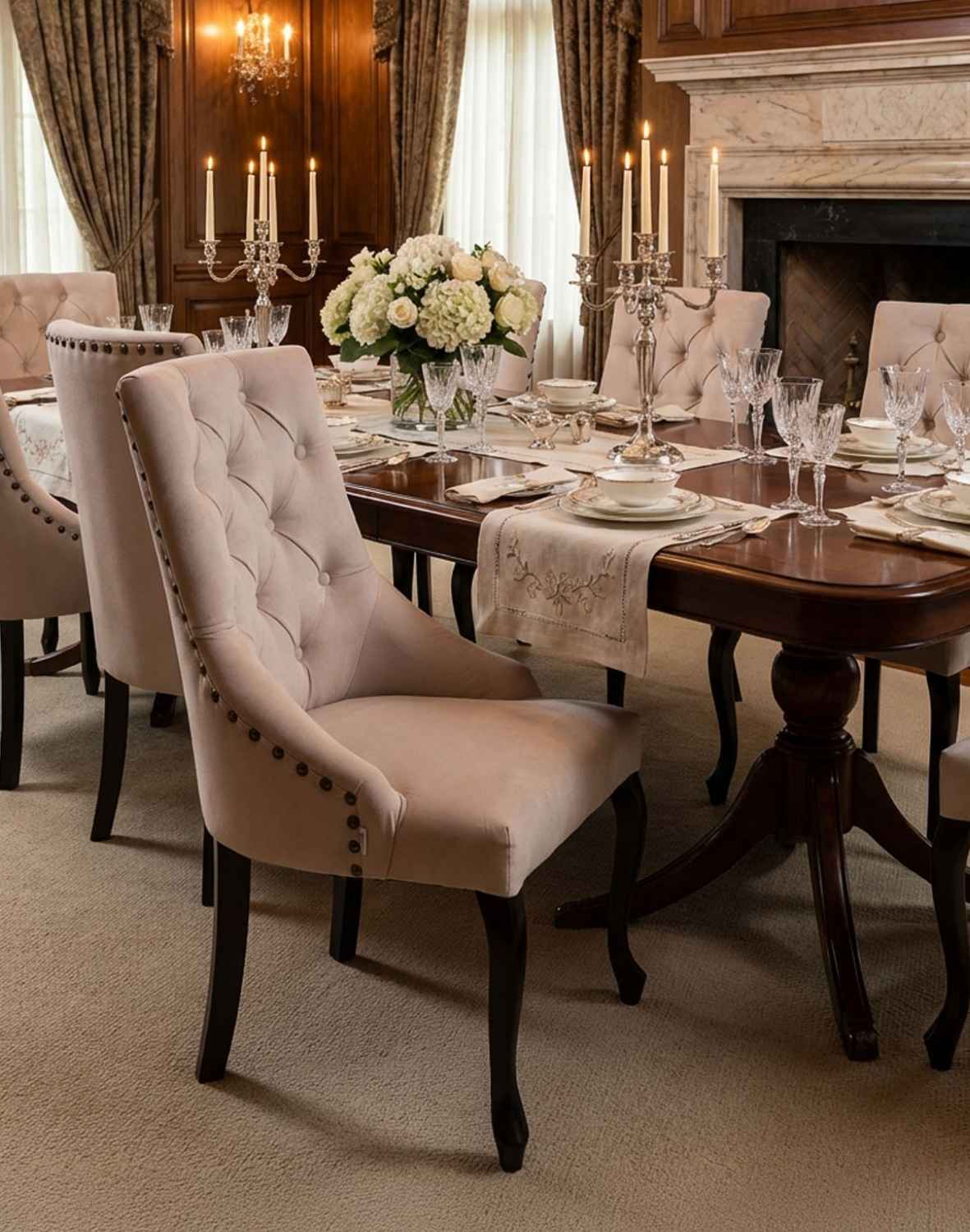 Krzesło Sisi 2 z pinezką i giętymi nogami w stylu ludwikowskim to ponadczasowy mebel do jadalni - piękny i funkcjonalny.