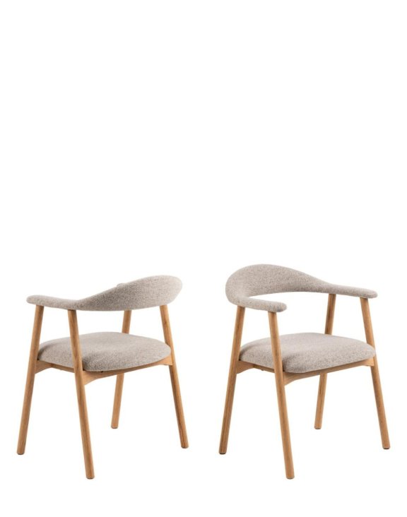 Krzesło z podłokietnikami i otwartym oparciem jest wykonane z solidnego drewna dębowego, które zostało pokryte olejem, co dodaje wnętrzu ciepła i przytulności.
