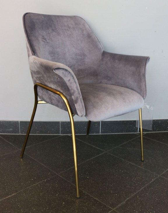 Szerokie siedzisko, oparcie i podłokietniki zapewniają maksymalny komfort podczas siedzenia. Dodatkowo Sofia to model elegancki, z lekko połyskującą tapicerką i złotą podstawą, która estetycznie kończy się na zewnętrznej stronie podłokietników.