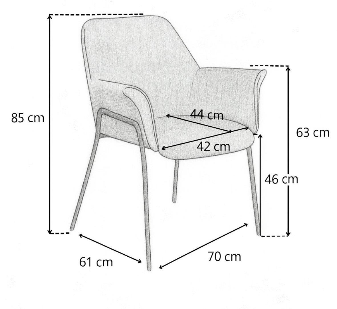 Szerokie siedzisko, oparcie i podłokietniki zapewniają maksymalny komfort podczas siedzenia. Dodatkowo Sofia to model elegancki, z lekko połyskującą tapicerką i złotą podstawą, która estetycznie kończy się na zewnętrznej stronie podłokietników.