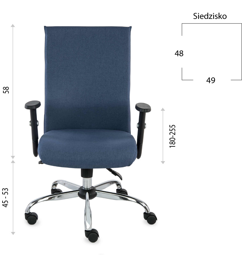Ergonomiczne, ekonomiczne krzesło biurowe z regulowanymi podłokietnikami i mechanizmem synchronicznym.