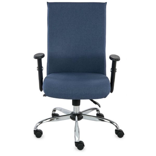 Siedzisko oraz oparcie tapicerowane są trwałą tkaniną Team w kolorze niebieskim.