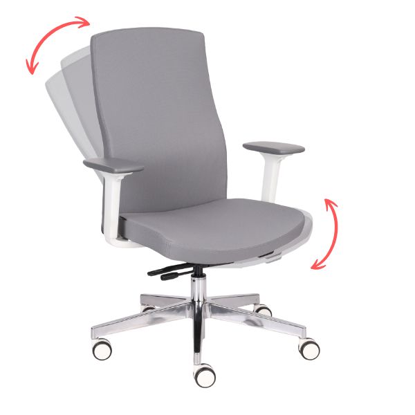 Oparcie odchylające się z siedziskiem synchronicznie (ruch oparcia jest szybszy i dalszy), dając jednocześnie możliwość blokady w 4 płaszczyznach, w tym w klasycznej pozycji do pracy,