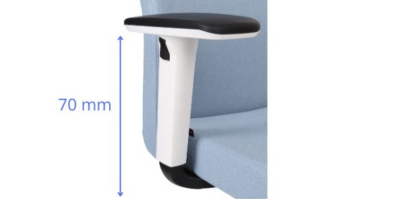 Wysokość podłokietników regulowana jest w zakresie 70 mm.