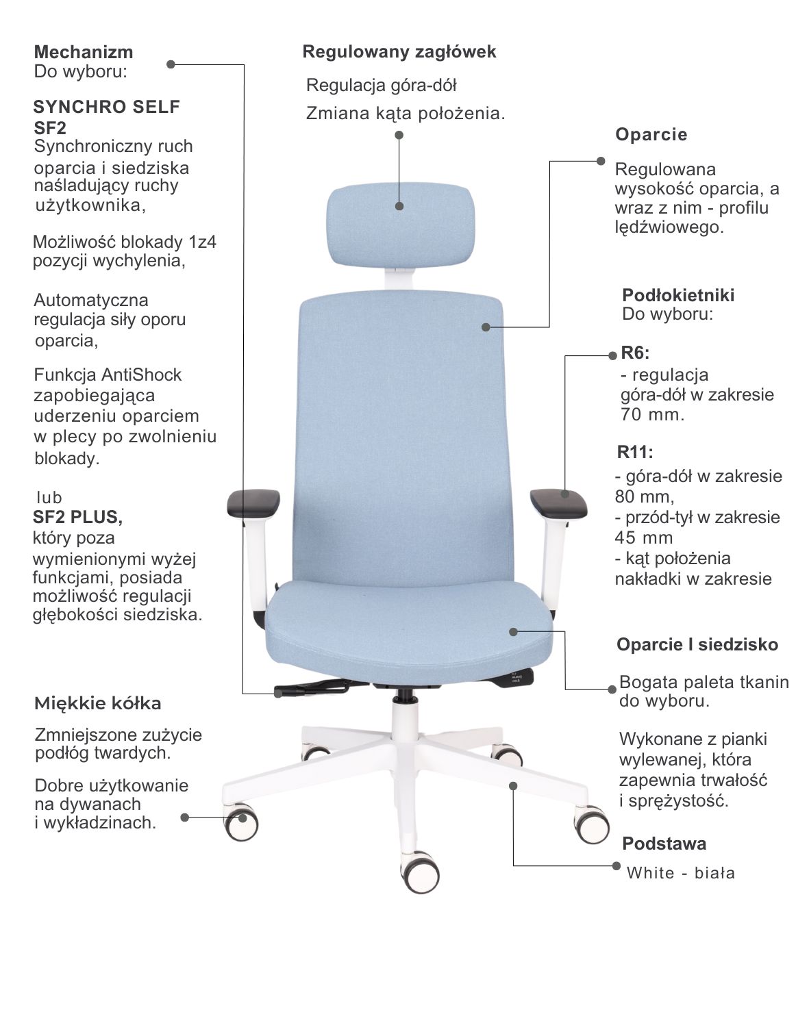 | Team Pro W HD White SF2 (mechanizm) R6 (podłokietnik) | ||||||||||