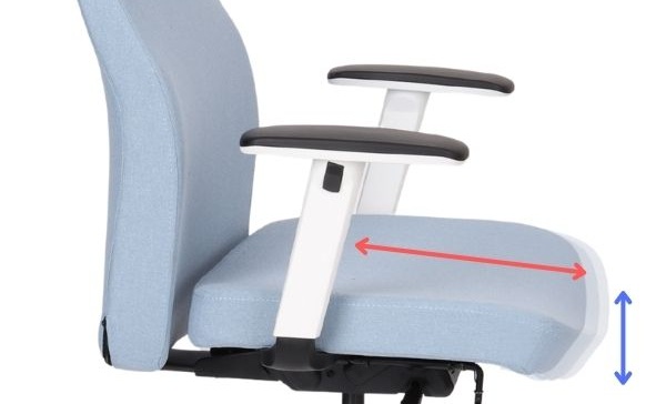 Dzięki regulacji głębokości siedziska, krzesło w prosty sposób można dopasować do osób o różnym wzroście. To bardzo istotne, aby zachować kąt 90 stopni w kolanach podczas wielu godzin spędzonych w pozycji siedzącej. Dodatkowo zapobiega to uciskom i drętwieniu nóg.