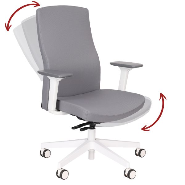 Oparcie odchylające się z siedziskiem synchronicznie (ruch oparcia jest szybszy i dalszy), dając jednocześnie możliwość blokady w 4 płaszczyznach, w tym w klasycznej pozycji do pracy,