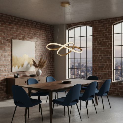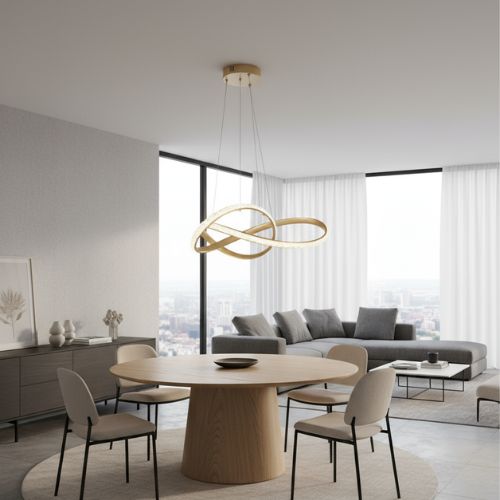 Lampa wisząca Fondi jest połączeniem nowoczesnej formy i eleganckiego designu, które przyciąga uwagę niczym biżuteria we wnętrzu. Jej unikalna, przestrzenna konstrukcja oparta na dwóch przeplatających się obręczach nadaje całości lekkości i dynamiki, sprawiając, że lampa wygląda niemal jak rzeźba zawieszona w powietrzu.