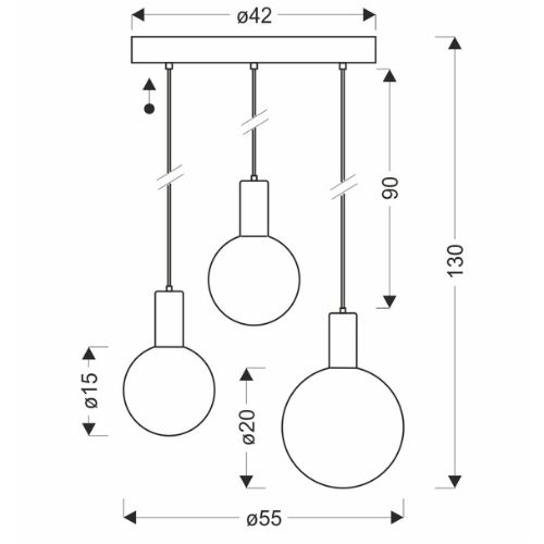 Każdy zwis posiada możliwość regulacji wysokości, dzięki czemu: dopasujesz lampę do wysokości pomieszczenia, ustawisz klosze symetrycznie lub na różnych poziomach, idealnie wycentrujesz światło nad stołem czy wyspą.