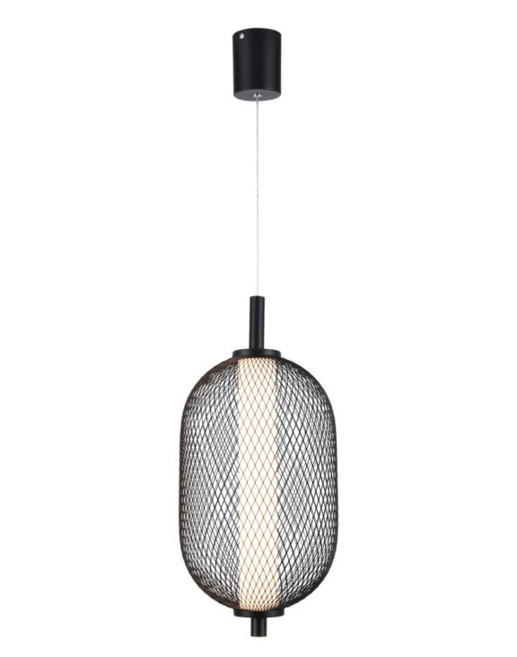 Lampa wyróżnia się metalowym kloszem w formie ażurowej siatki w kolorze czarnym, który nadaje jej niepowtarzalnego charakteru.