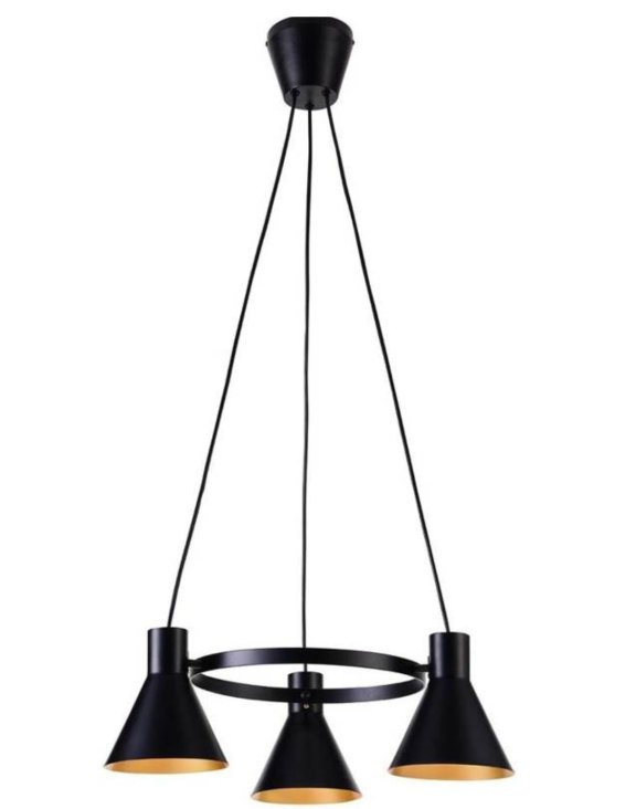 Lampa wykonana jest z metalu w czarnym ponadczasowym kolorze, a wnętrze abażurów w kolorze złotym dodaje całości elegancji.