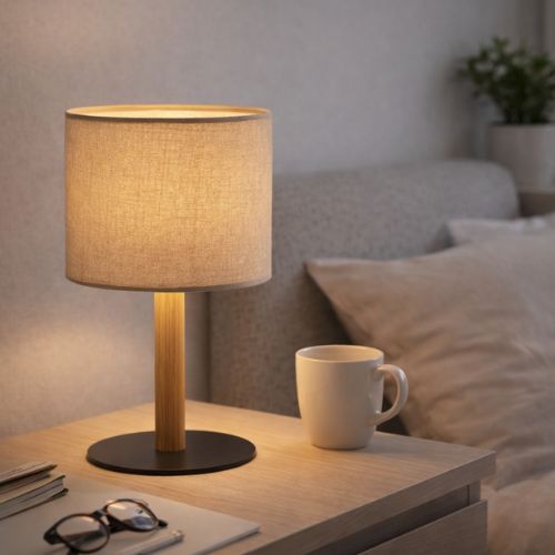 Rustykalna lampa nocna, lniana, to lampka stworzona z myślą o przytulnych wnętrzach.