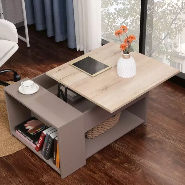 Dzięki podnoszonemu blatowi, który unoszony jest aż do 56 cm, można jej używać nie tylko jako stolika kawowego, ale również jako powierzchni do pracy, jedzenia czy na laptopa.