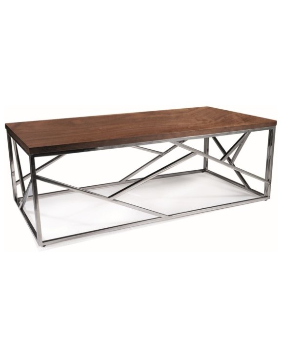 Prosty, prostokątny blat w dekorze orzecha w połączeniu z elegancką podstawą ze stali nierdzewnej w kolorze srebrnym tworzy wyjątkowy mebel, który podkreśli charakter każdego salonu.
