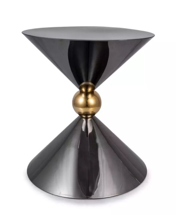 Charakterystyczna forma - przypominająca klepsydrę - została wzbogacona o złoty akcent w postaci centralnej kuli, która nadaje meblowi szyku i unikatowego charakteru.