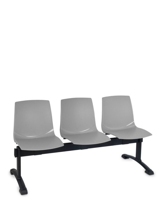 Ławka trzyosobowa Ari na stalowej konstrukcji z wyraźnie profilowanymi siedziskami wykonanymi z trwałego estetycznego plastiku (polipropylen, odporność UV, łatwo zmywalny).