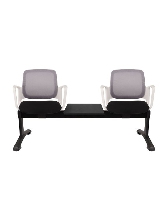 Każde siedzisko ławki posiada podłokietniki stałe (Arm) w kolorze białym, które zapewniają wysoki komfort użytkowania, wspierając ramiona podczas siedzenia.