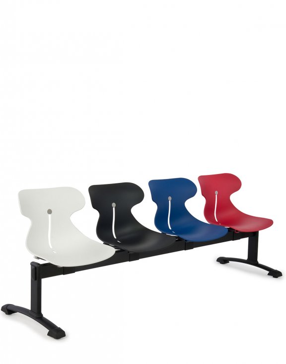 Ławka 4 - osobowa na stalowej konstrukcji z wyraźnie profilowanymi kubełkiem dostępnym w 6 kolorach.