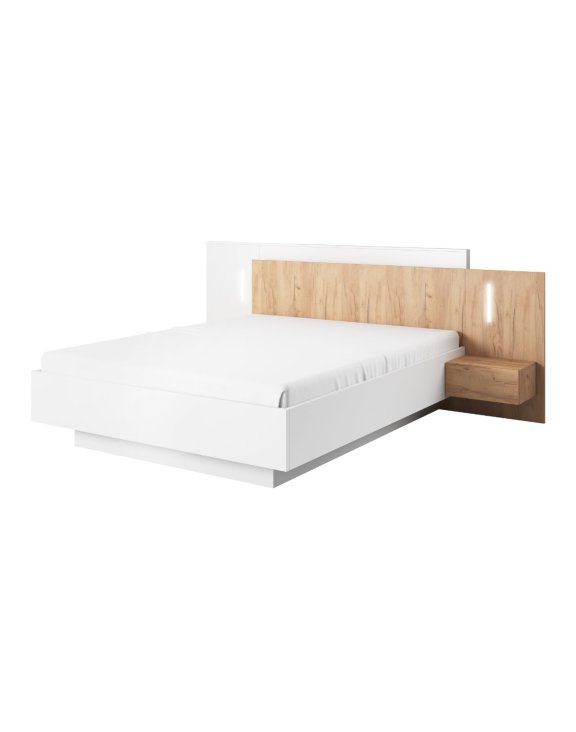 Drewniane łóżko z pojemnikiem, stolikami nocnymi i oświetleniem 160×200 – kolekcja 3D