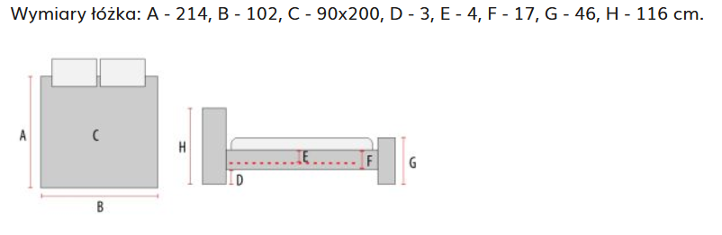 Rozmiar materaca: 90x200cm, dodatkowy: max. 90x195x18 cm.