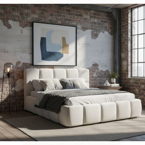 Łóżko chmurka Dream to połączenie nowoczesnego designu, komfortu i funkcjonalności. Jego masywna, tapicerowana rama nadaje meblowi wyjątkowego charakteru, przyciągając uwagę elegancją.