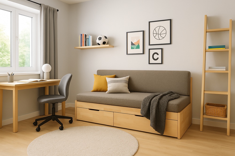 To rozwiązanie łączące trwałość, estetykę oraz maksymalną funkcjonalność — idealne do mniejszych sypialni, pokojów dziecięcych, młodzieżowych oraz pokoi gościnnych.