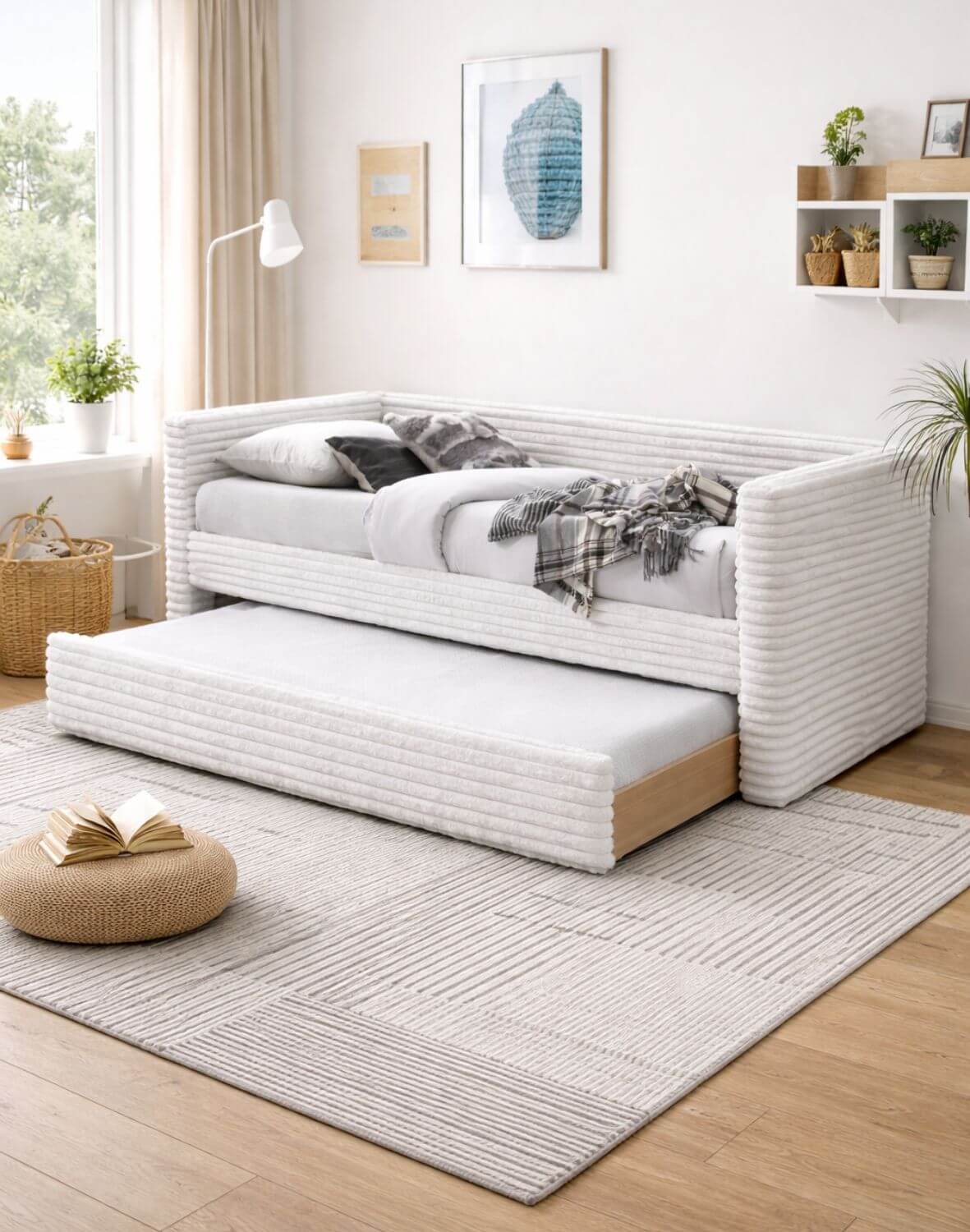 To rozwiązanie idealne, gdy spodziewasz się gości lub chcesz wygodnego miejsca dla rodzeństwa - w dzień łóżko prezentuje się kompaktowo, a nocą oferuje wygodną przestrzeń nocną.