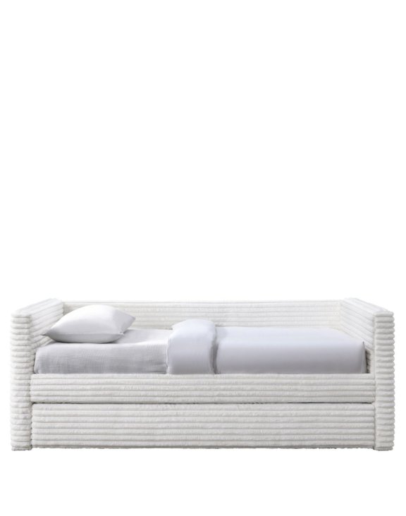Kremowa tapicerka wykonana z miękkiej, przyjemnej w dotyku tkaniny nadaje meblowi przytulny, harmonijny charakter i sprawia, że łatwo dopasujesz je do różnych stylów aranżacji wnętrz.