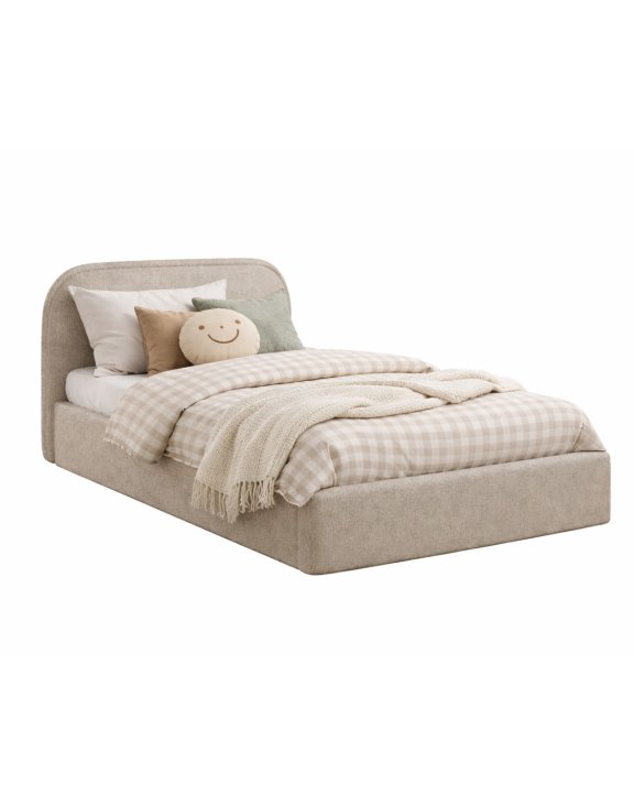 Model łączy nowoczesną, miękką formę z praktycznymi rozwiązaniami, które sprawdzą się w codziennym użytkowaniu. Dzięki tapicerowanej konstrukcji i zaokrąglonemu zagłowiu łóżko prezentuje się przytulnie, a jednocześnie pasuje do współczesnych aranżacji wnętrz.