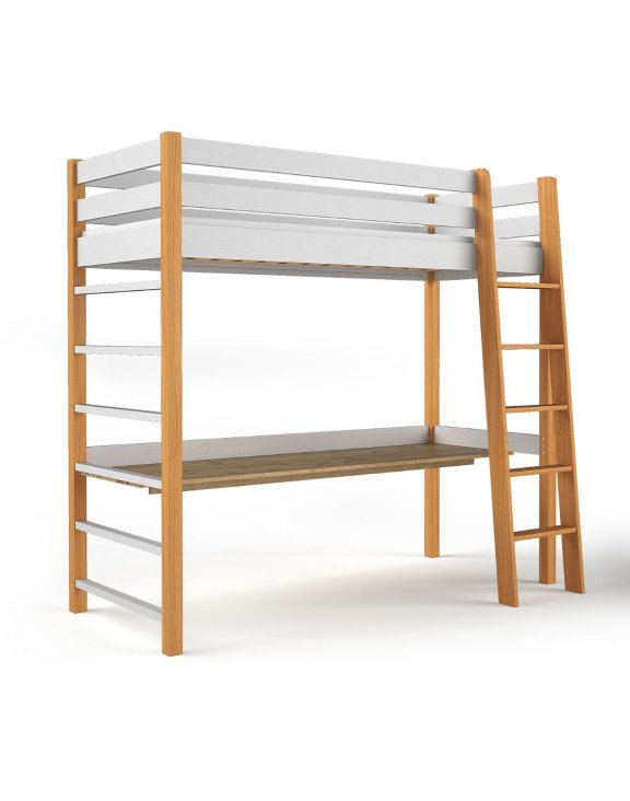 Drewniane łóżko piętrowe z biurkiem NIKO to świetny wybór dla niewielkich przestrzeni, które łączy funkcjonalność i design.