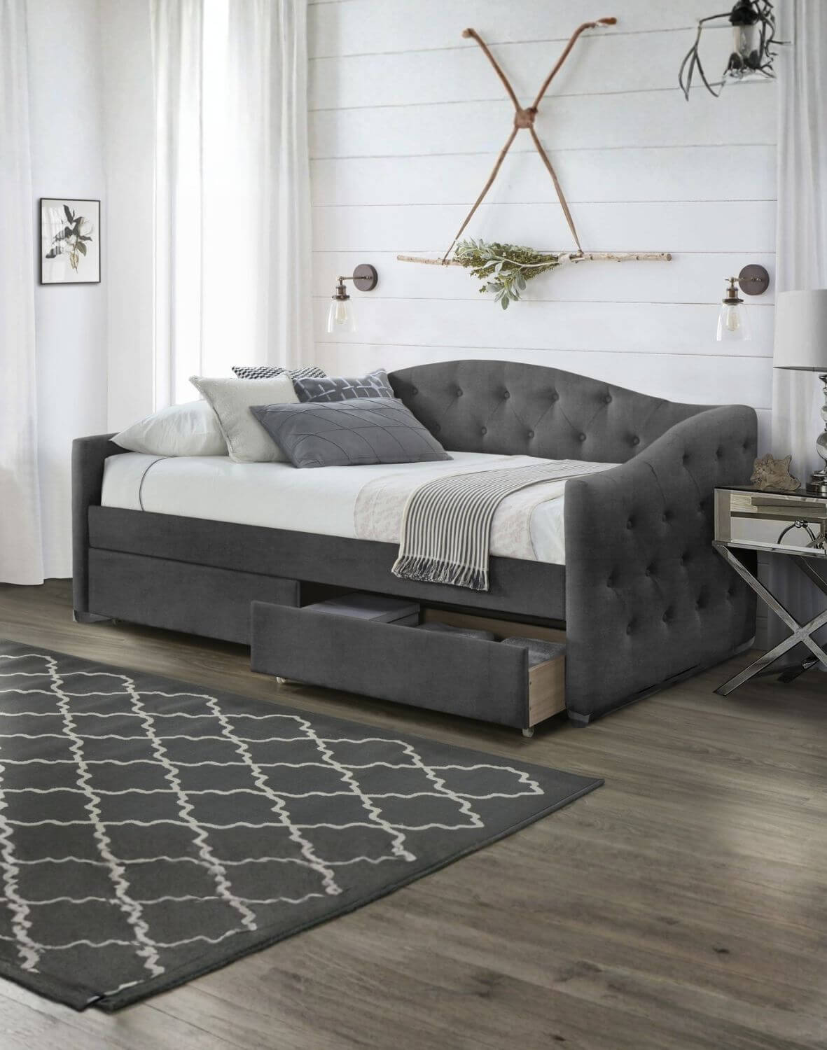 Pojemniki pod łóżkiem pomagają ukryć dodatkową pościel, poduszki lub akcesoria, co sprawia, że mebel jest zarówno praktyczny, jak i stylowy.