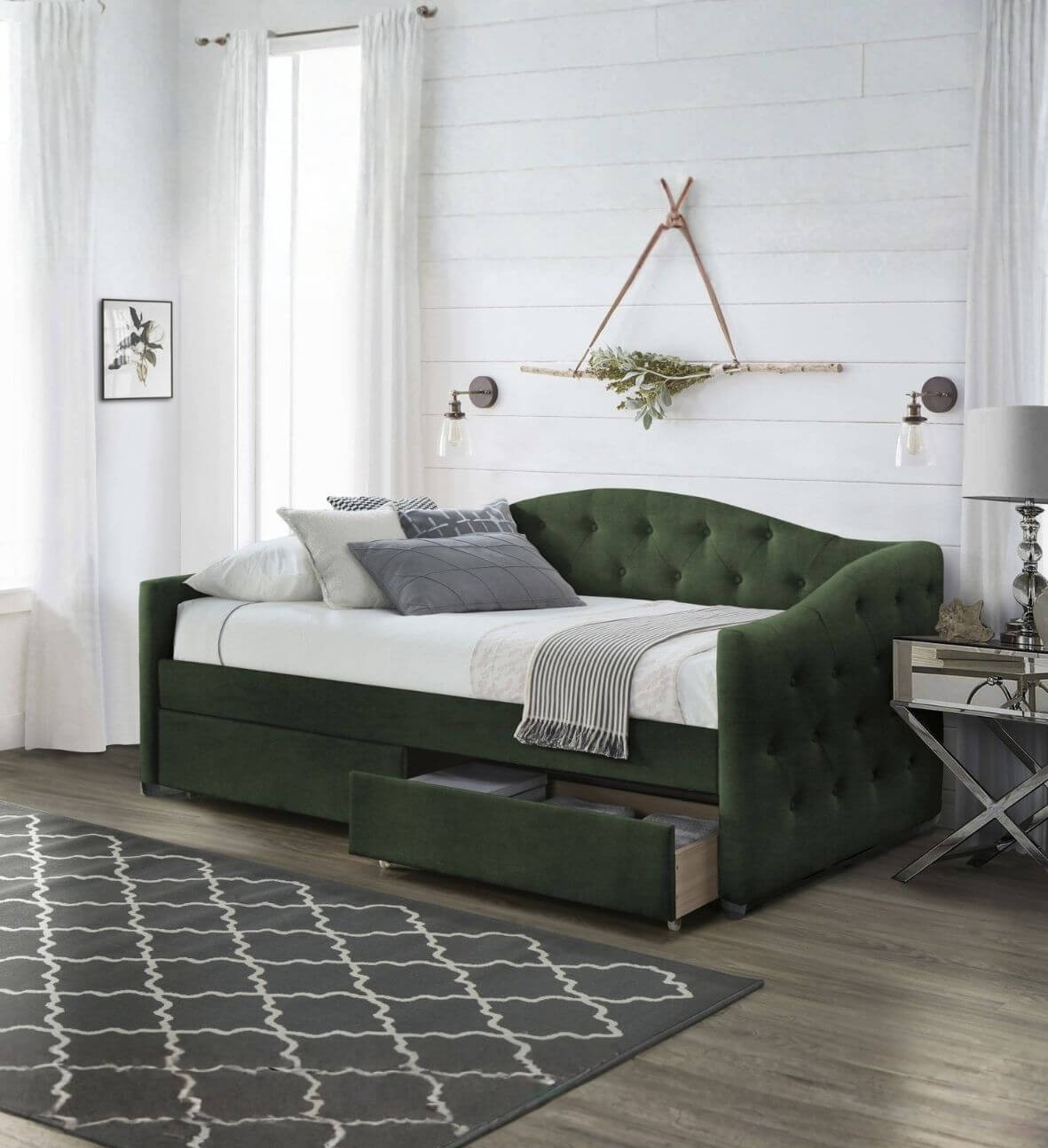 | Łóżko pojedyncze z szufladami Aloha 90x200, zielony velvet | 1729 zł |