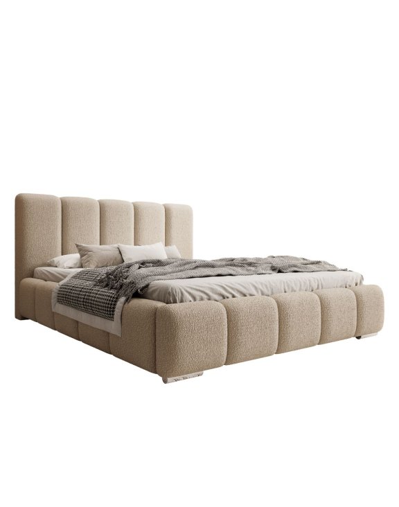 Model w całości tapicerowany wyróżnia się wysokim wezgłowiem oraz pionowymi przeszyciami, które dodają bryle lekkości i podkreślają jej elegancki, współczesny charakter.