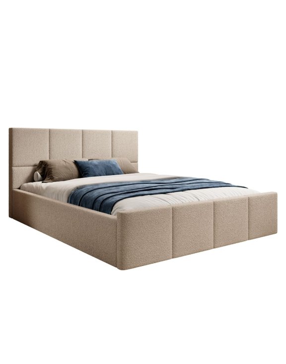 Łóżko w standardzie wyposażone jest w drewniany stelaż z automatami sprężynującymi. Zapewnia on stabilne podparcie materaca oraz wygodny dostęp do pojemnika na pościel. Jest to funkcjonalne i ekonomiczne rozwiązanie do codziennego użytkowania.