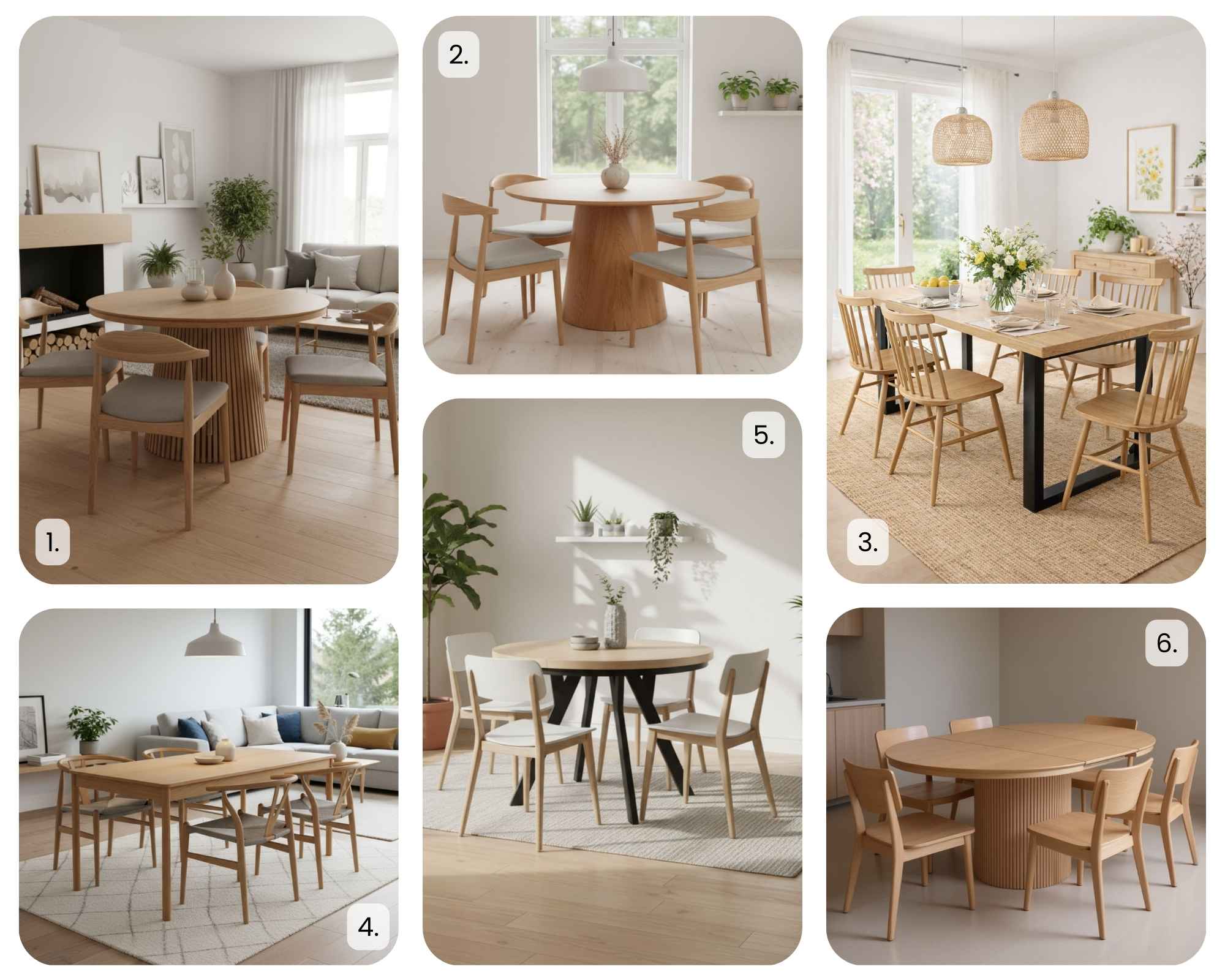 1. Stół okrągły rozkładany Fjord M 120-200 cm | 2. Stół okrągły Enzo M 120 cm | 3. Stół rozkładany do salonu Grand M Plus 160-200 cm | 4. Stół drewniany rozkładany Blair 180-230 cm | 5. Mały stół rozkładany Torino 90-190x90 cm | 6. Okrągły stół rozkładany Sorrento 120cm - 160 cm