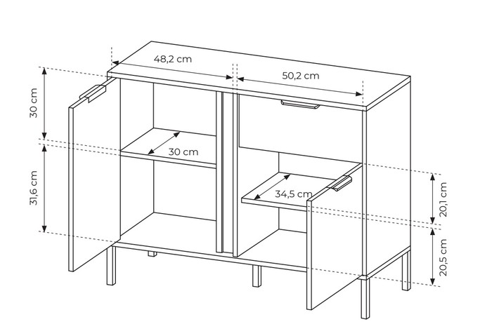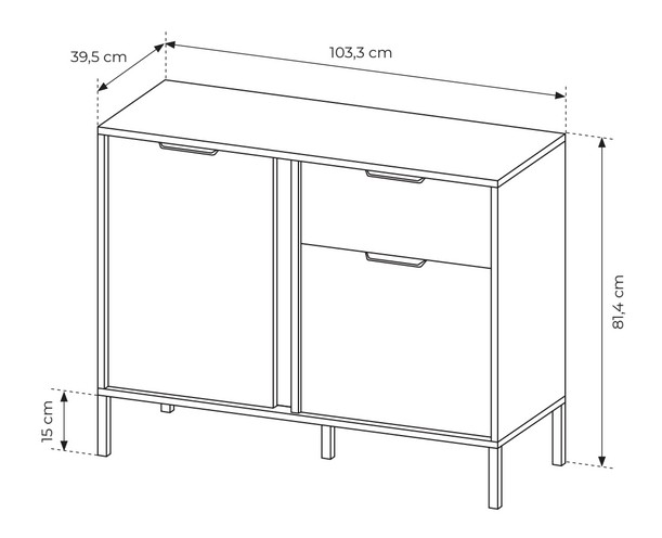 Mała komoda Lars D na nóżkach z szafkami i szufladą 103 cm