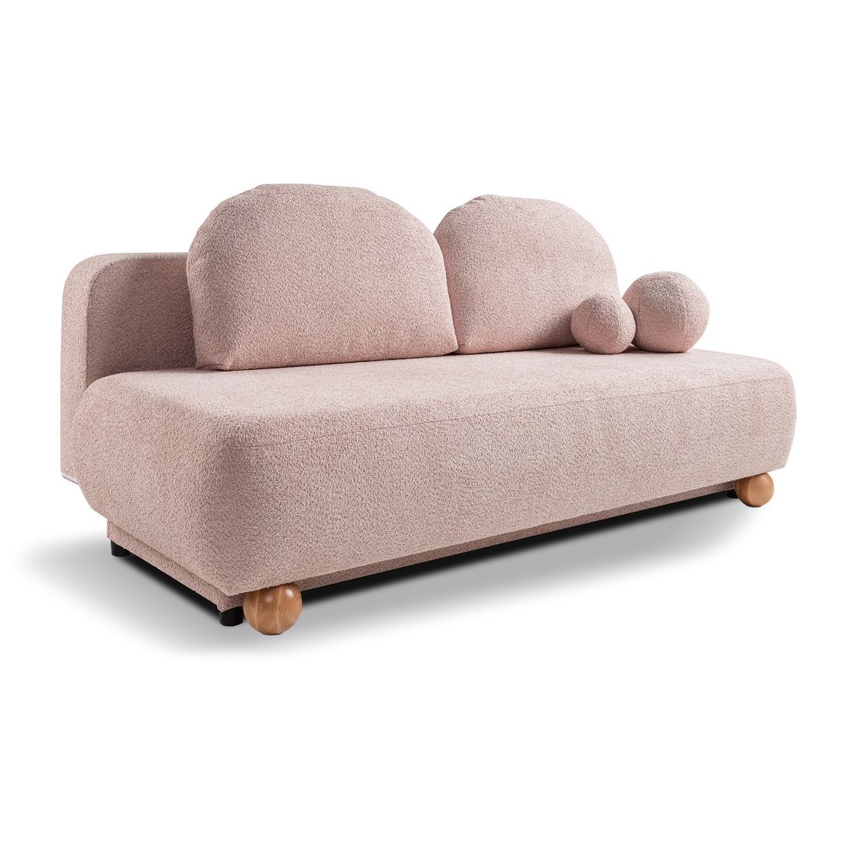 Tapicerka dostępna w modnych, miękkich tkaninach, w tym typu bouclé, doskonale podkreślających bryłę mebla i wpisujących się w aktualne trendy.