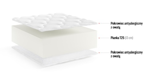 Sercem materaca Alisa 15 jest pianka poliuretanowa T25 o wysokości 13 cm, która: