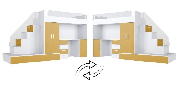 Cechy i zalety: - Bezpieczeństwo – barierki na górnym łóżku i przy schodkach. - Wysoka jakość – solidna płyta laminowana i fronty MDF na wysoki połysk. - Modny design – nowoczesne wykończenie w atrakcyjnych kolorach. - Praktyczność – biurko, szafa i schodki z funkcją przechowywania w jednym meblu. - Udźwig górnego łóżka: do 75 kg. - Stelaż łóżka jest wykonany z ramy ze sklejki bukowej dzięki czemu jest on bardzo wytrzymały. Stelaż posiada 21 listew sprężynujących.