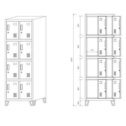Konstrukcja szafy opiera się na pionowym układzie kilku niezależnych skrytek, z których każda stanowi osobną, zamykaną przestrzeń. Taki układ pozwala efektywnie wykorzystać wysokość pomieszczenia i zapewnia komfort użytkowania nawet w wąskich korytarzach czy niewielkich szatniach.