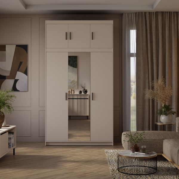 Dzięki prostej, nowoczesnej formie oraz kolorystyce beż piaskowy doskonale pasuje do współczesnych wnętrz – sypialni, garderoby czy przedpokoju.