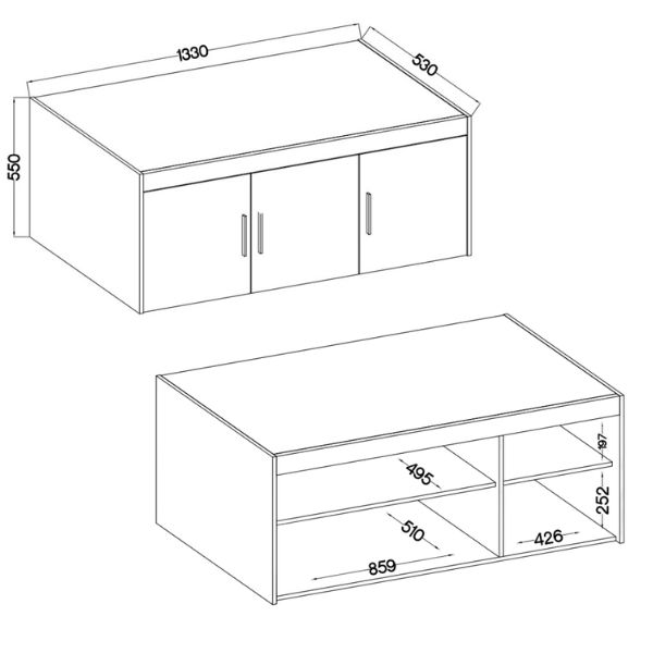 Nadstawka pozwala w prosty sposób zwiększyć funkcjonalność szafy, wykorzystując przestrzeń nad nią i pomagając utrzymać porządek w pomieszczeniu.