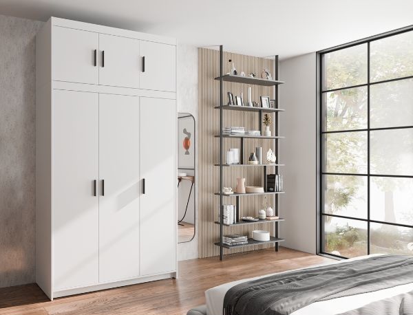 Dzięki prostej, nowoczesnej formie oraz uniwersalnej białej kolorystyce doskonale pasuje do współczesnych wnętrz – sypialni, garderoby czy przedpokoju.