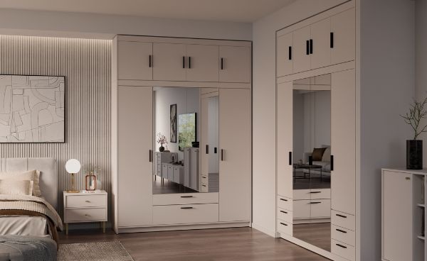 Dzięki prostej, nowoczesnej formie oraz kolorystyce beż piaskowy doskonale pasuje do współczesnych wnętrz – sypialni, garderoby czy przedpokoju.