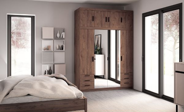 Model wyposażony jest w czworo drzwi, za którymi znajduje się przestronne komory do przechowywania rzadziej używanych rzeczy, takich jak pościel, koce, sezonowa odzież czy akcesoria domowe.