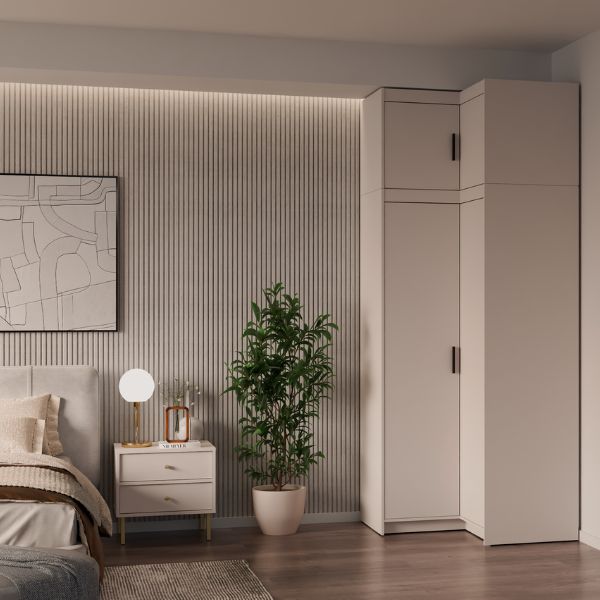 Nadstawka do szafy narożnej Elena 2D to praktyczne rozszerzenie przestrzeni do przechowywania, które idealnie uzupełnia szafy z kolekcji Elena.