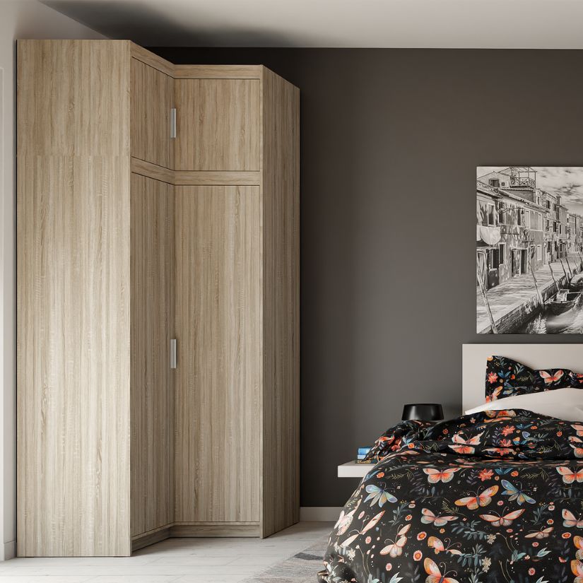 Nadstawka do szafy narożnej Elena 2D to praktyczne rozszerzenie przestrzeni do przechowywania, które idealnie uzupełnia szafy z kolekcji Elena.