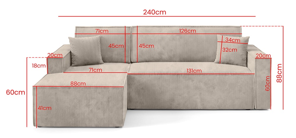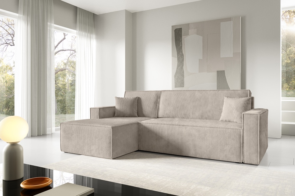 Narożnik dostępny w wersji prawo- i lewostronnej, co pozwala na dopasowanie do układu wnętrza.