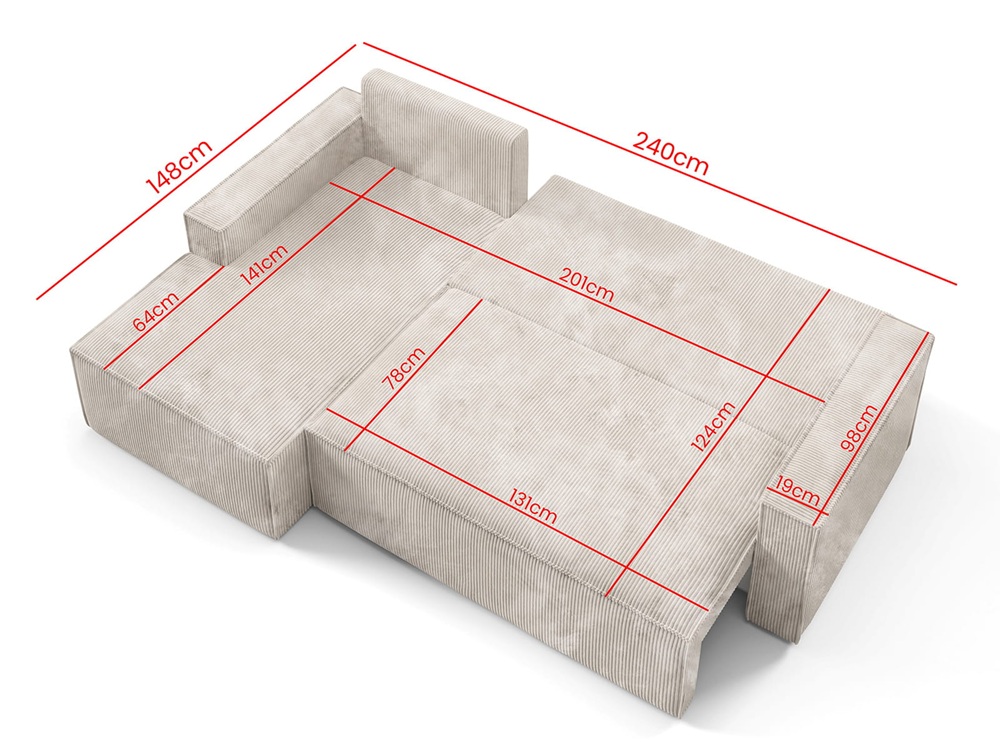 Siedzisko oparte na sprężynach falistych oraz piance zapewnia komfort zarówno podczas codziennego wypoczynku, jak i snu. Model wyposażony jest w funkcję spania typu DL oraz pojemnik na pościel, dzięki czemu narożnik sprawdzi się także w mniejszych mieszkaniach.
